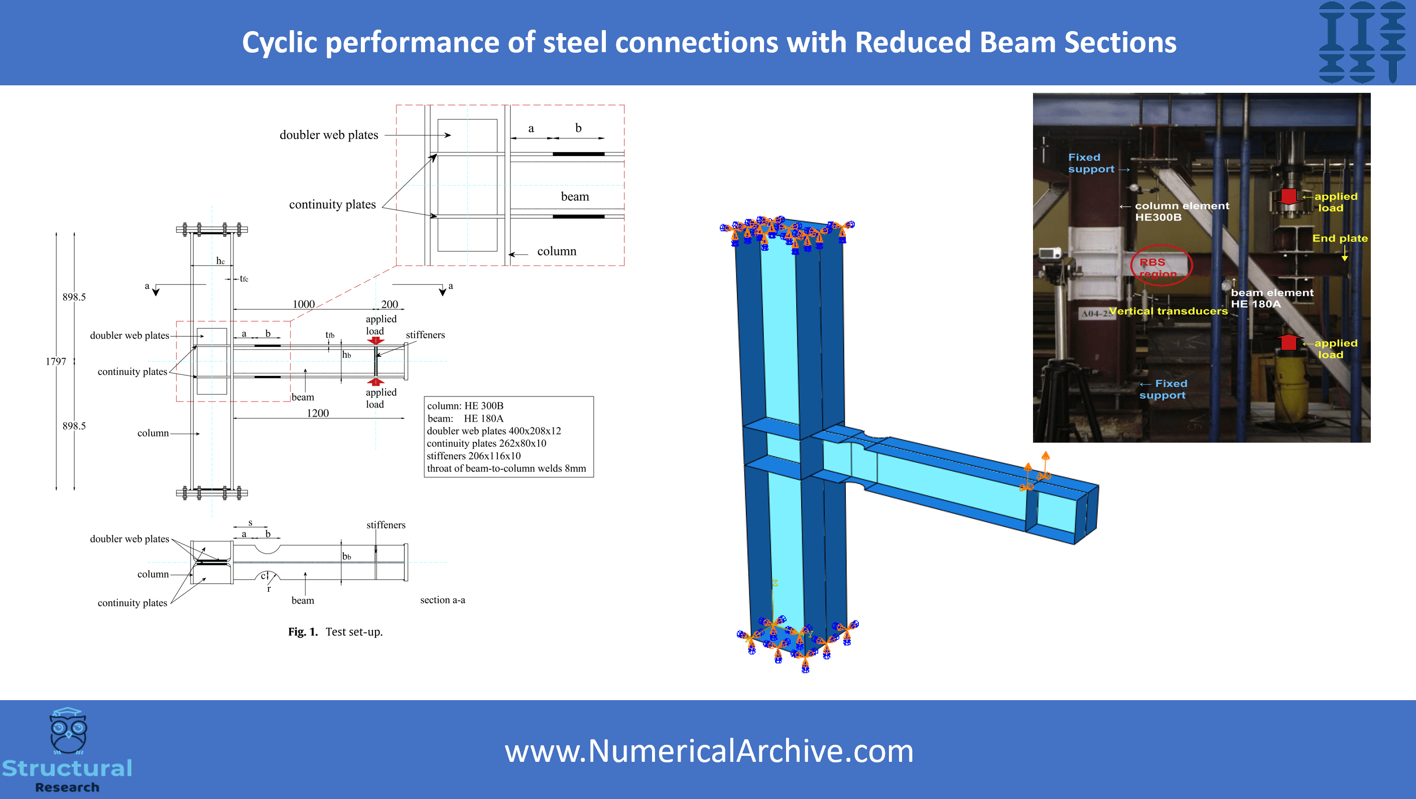 Structural Numerical Research Center provides numerous numerical models with the assist the scientists and researchers from all over the world. In the last 10 years, we have always aimed to improve engineering knowledge. This ABAQUS model (Cyclic performance of steel connections with Reduced Beam Sections) is based on a laboratory sample. The step-by-step training has been used to describe Full model FEM analysis to simulate the behavior of steel Structures. By evaluating this numerical model (Cyclic performance of steel connections with Reduced Beam Sections using ABAQUS), you will be able to simulate any type of Reduced Beam Sections (RBS) using ABAQUS and extract the contour of stresses, strains, forces and displacements.